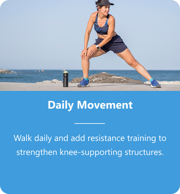 Knee OA typically develops after age 50, although it can begin earlier, and women are up to twice as likely to develop the condition. While age and sex cannot be modified, knee OA is strongly associated with lifestyle factors that can be controlled.