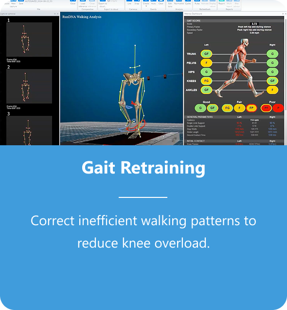 Request a gait analysis and gait retraining, to correct inefficient gait mechanics that contribute to knee OA.
