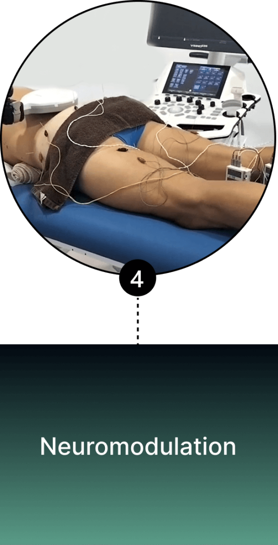This non-invasive therapy uses electrical impulses to regulate or normalize nervous system function. It reduces pain and calms hypersensitized nerves that characterize knee OA. At the same time, it stimulates the surrounding muscles that support the knee, to enhance knee stability.