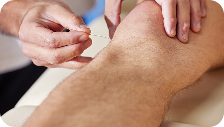 Dry needling targets myofascial trigger points – tiny nodules of tightly contracted fibers that cause pain and interfere with muscle action. Trigger points can contribute to knee OA pain by disrupting the action of knee stabilizers. The dry needling procedure inserts filament-thin, non-medicated (dry) needles into active trigger points, triggering a twitch response that relaxes taut fibers and immediately relieves pain.