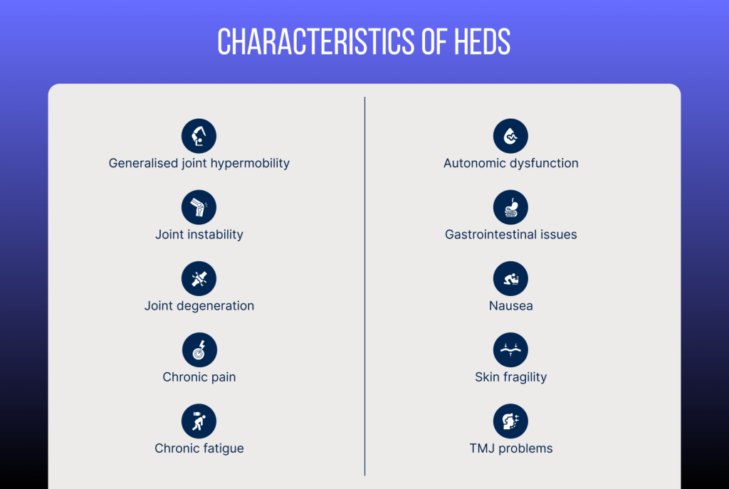 Characteristics of hEDS include some or all of the following: